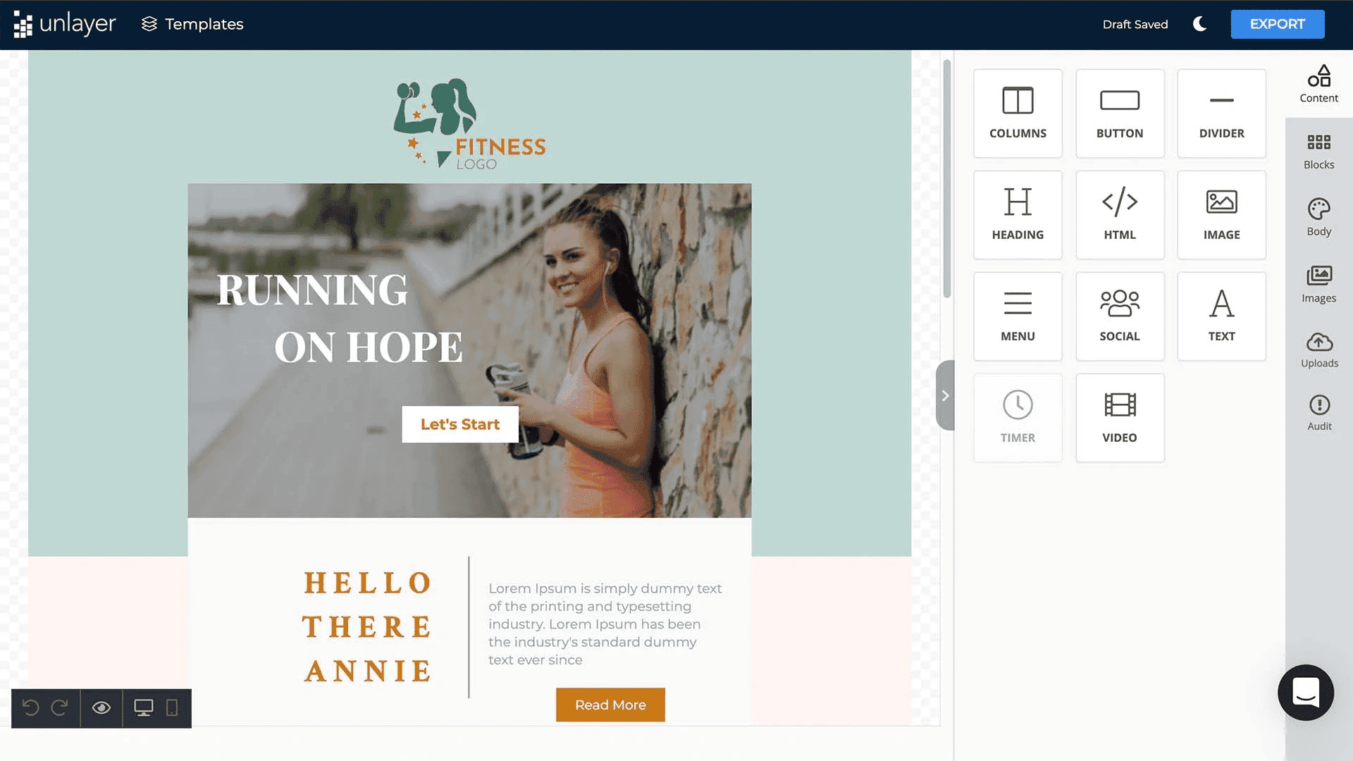 Other than that, you can expect the following features from Unlayer: