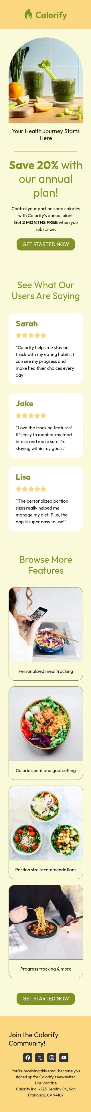 Upselling von Jahresplänen E-Mail-Vorlage «Die Reise zur Gesundheit beginnt» für Essen-Branche