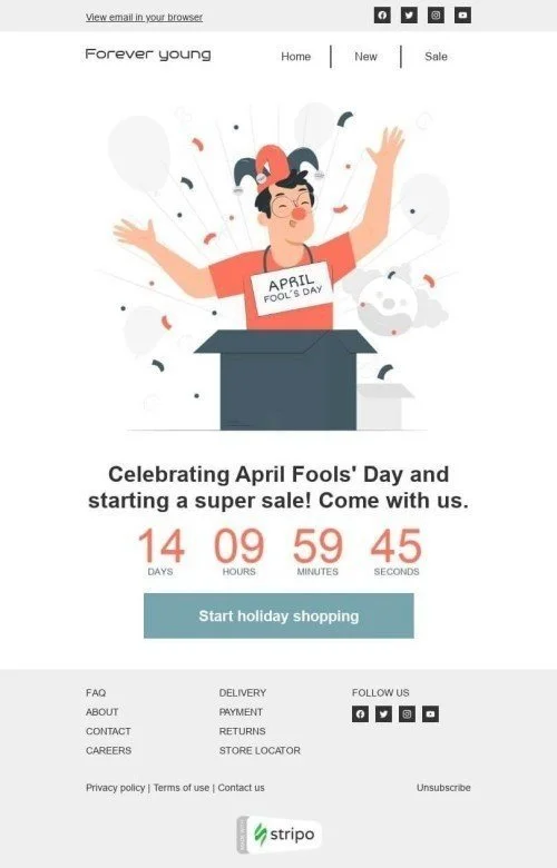 Aprilscherz E-Mail-Vorlage «Wir feiern den Aprilscherz» für Mode-Branche