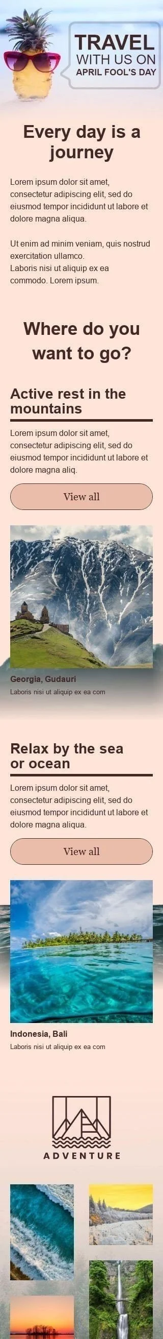 Aprilscherz E-Mail-Vorlage «Jeder Tag ist eine Reise» für Tourismus-Branche