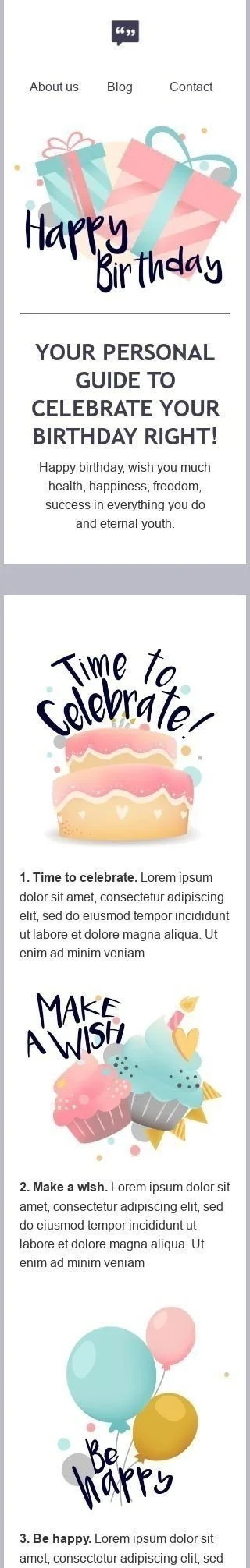 Geburtstag E-Mail-Vorlage «Ihr Urlaubsführer» für Publikationen und Blogs-Branche
