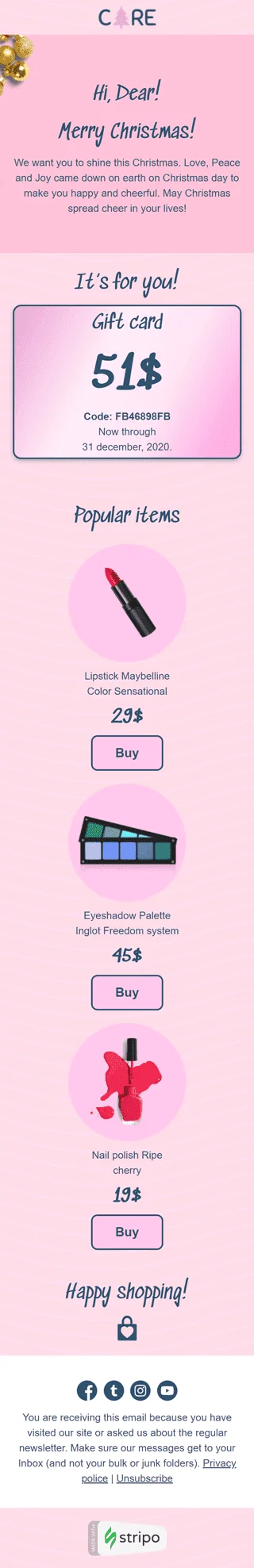Weihnachten E-Mail-Vorlage «Frauenfreuden» für Beauty & Pflege-Branche