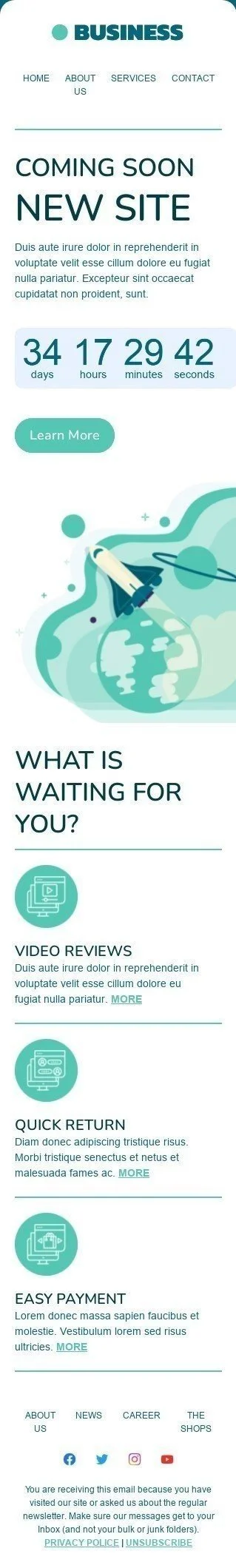 Demnächst E-Mail-Vorlage «Neue Seite» für Business-Branche