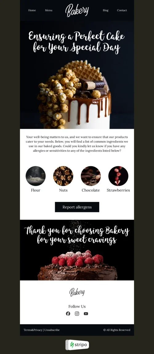 Bestätigen Sie Ihre köstliche Bestellung mit unserer "Perfect Cake" Bestätigungs-E-Mail-Vorlage, die für die Backbranche entwickelt wurde. Diese Vorlage bietet eine angenehme Möglichkeit, Kuchenbestellungen zu bestätigen und sicherzustellen, dass die Kunden alle benötigten Details erhalten, einschließlich Geschmäcker, Größen und Abhol- oder Lieferinformationen. Mit einem visuell ansprechenden Design, das die Süße Ihrer Kreationen widerspiegelt, verbessert diese Vorlage das Kundenerlebnis und verstärkt das Engagement Ihrer Marke für Qualität. Ob für Hochzeiten, Geburtstage oder besondere Anlässe, vertrauen Sie dieser Vorlage, um den Standard für klare und ansprechende Bestätigungs-E-Mails zu setzen und dabei zu helfen, dauerhafte Kundenbeziehungen aufzubauen.