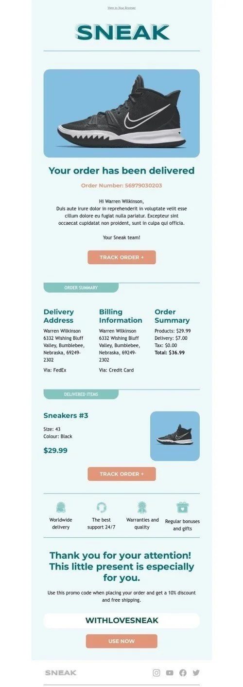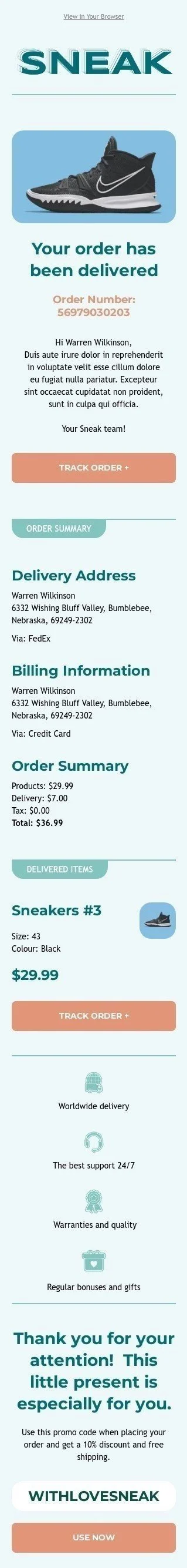 Lieferung E-Mail-Vorlage «Ihre Bestellung wurde geliefert» für Sport-Branche