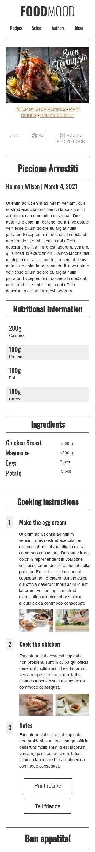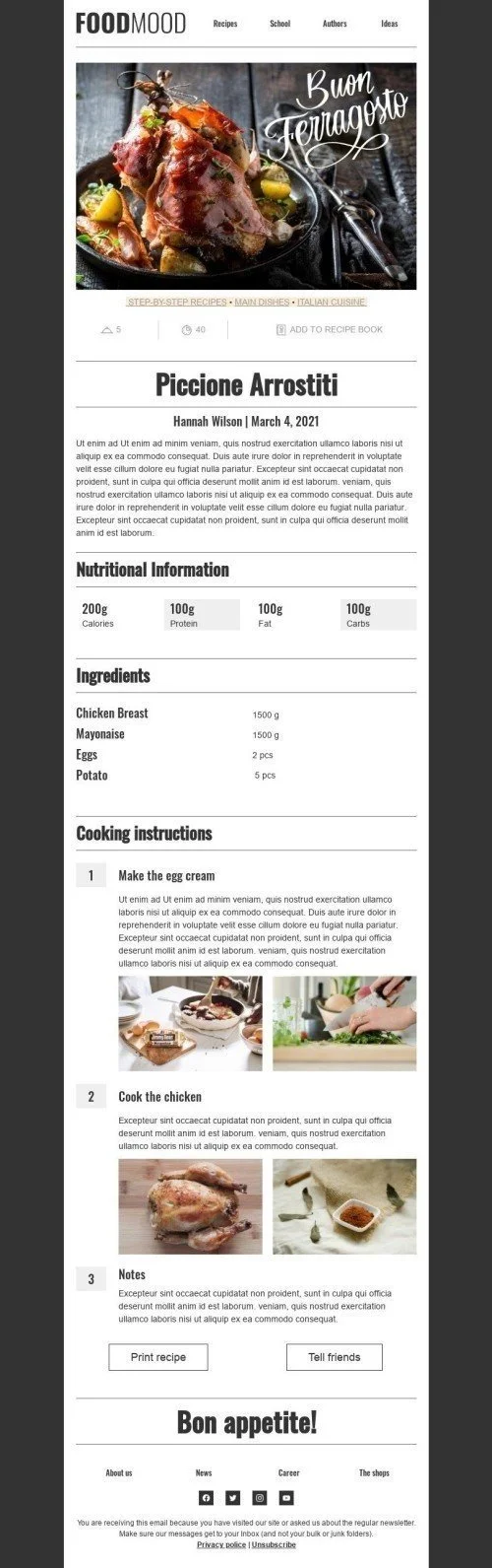 Ferragosto E-Mail-Vorlage «Schritt-für-Schritt-Rezepte» für Essen-Branche