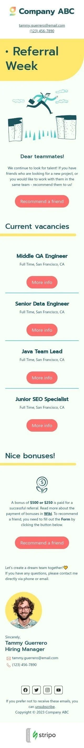 Interne E-Mail-Vorlage «Empfehlungswoche» für HR-Branche
