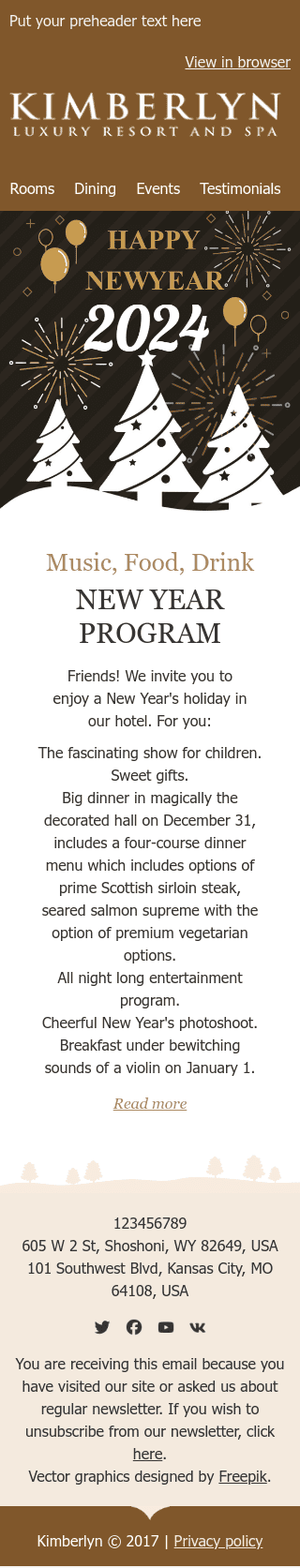 Neujahr E-Mail-Vorlage "die Einladung" für Hotels-Branche