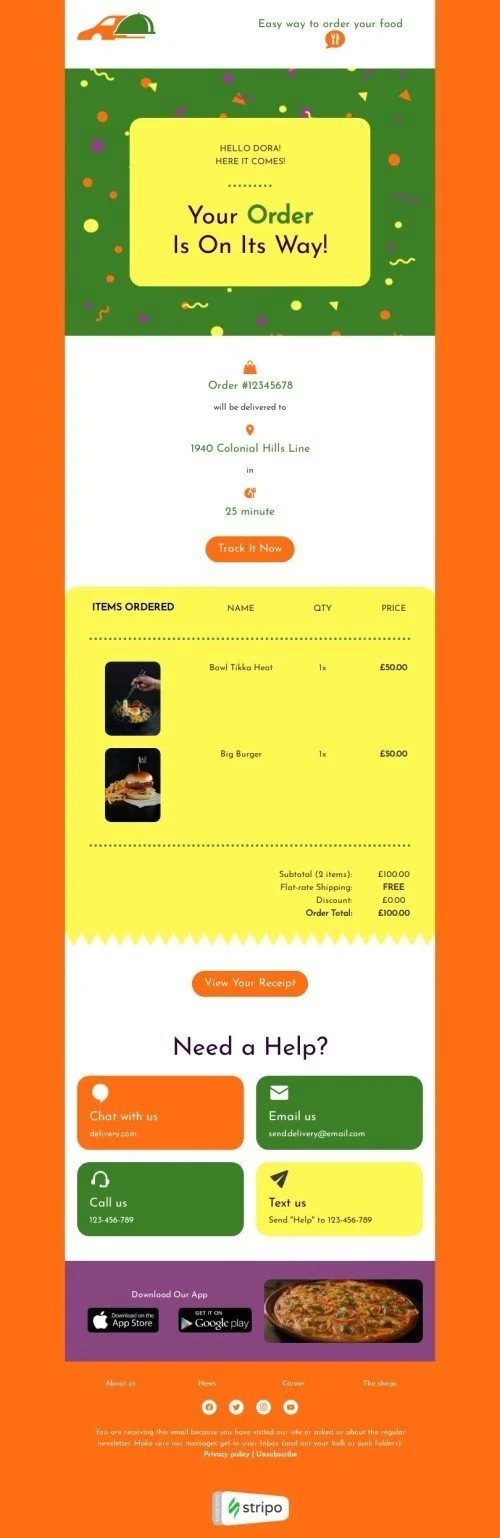 Auftragsbestätigung E-Mail-Vorlage «Einfache Möglichkeit, Ihr Essen zu bestellen» für Essen-Branche