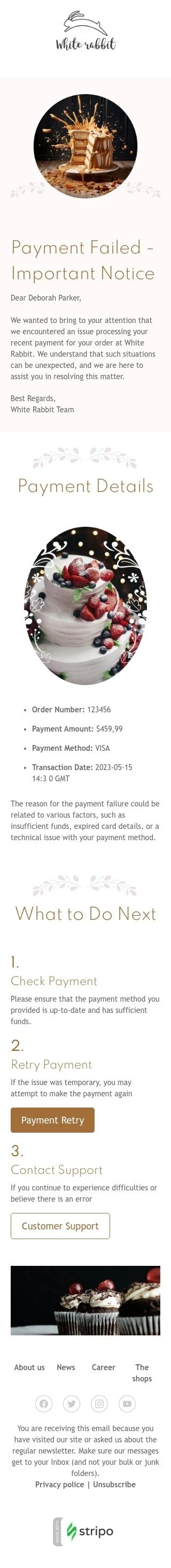 Auftragsbestätigung E-Mail-Vorlage «Bezahlung fehlgeschlagen» für Backen-Branche