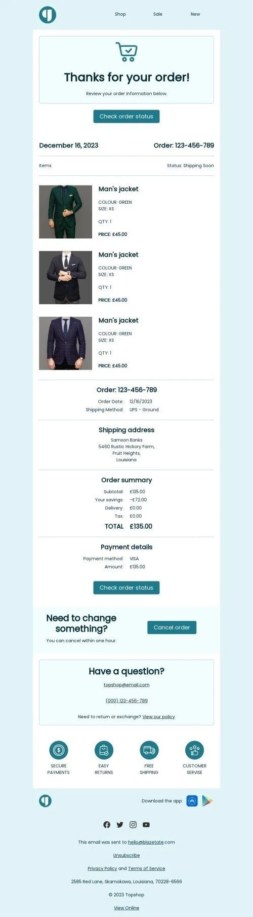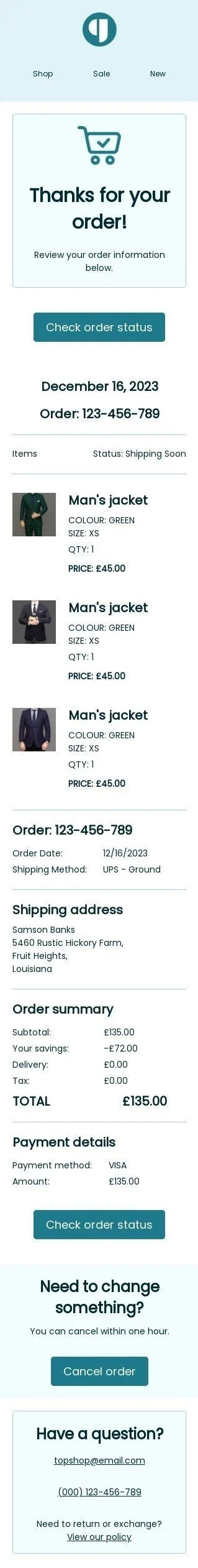 Bestellung E-Mail-Vorlage «Danke für Ihre Bestellung» für E-Commerce-Branche