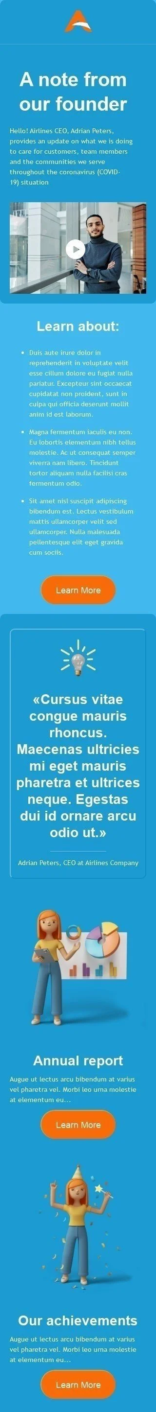 Persönliche Anmerkung E-Mail-Vorlage «Eine Notiz von unserem Gründer» für Fluggesellschaft-Branche