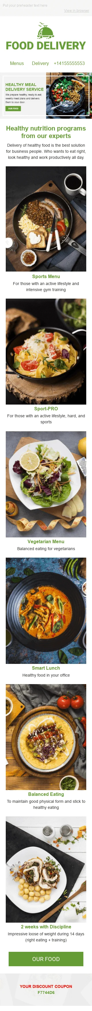 Werbung E-Mail-Vorlage «Zu Hause essen» für Essen-Branche