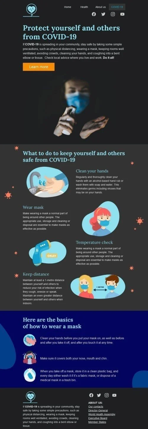 Werbung E-Mail-Vorlage «Schütze dich selbst» für Gesundheit und Schönheit-Branche