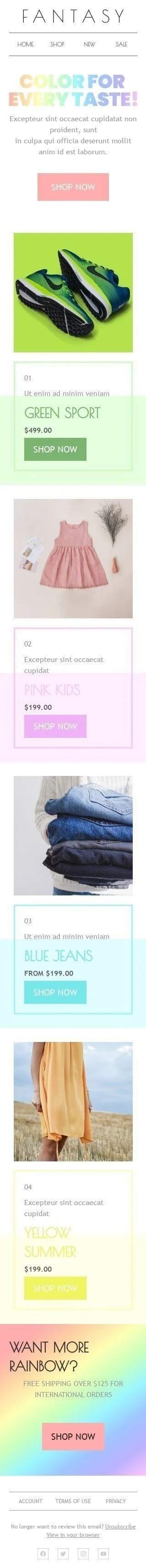 Werbung E-Mail-Vorlage «Regenbogen» für Mode-Branche