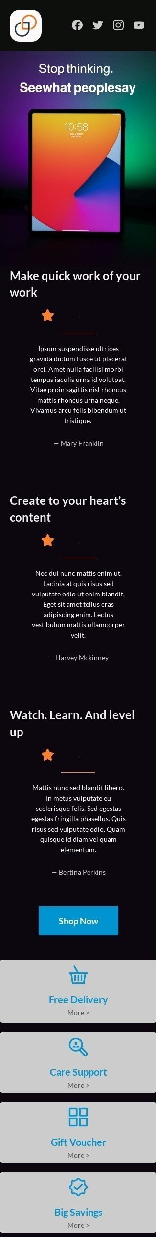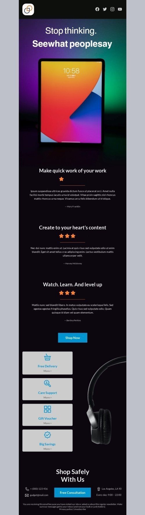 Werbung E-Mail-Vorlage «Sehen Sie, was die Leute sagen» für Elektronik & Gadgets-Branche