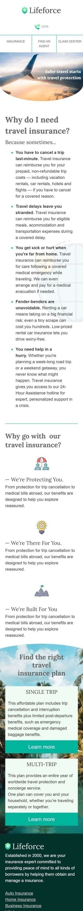 Werbung E-Mail-Vorlage «Reiseversicherung» für Versicherung-Branche