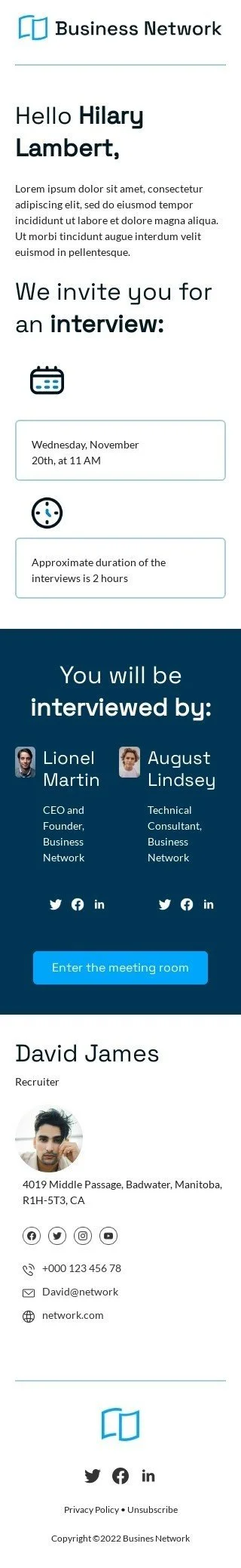 Werbung E-Mail-Vorlage «Wir laden Sie zu einem Vorstellungsgespräch ein» für Business-Branche