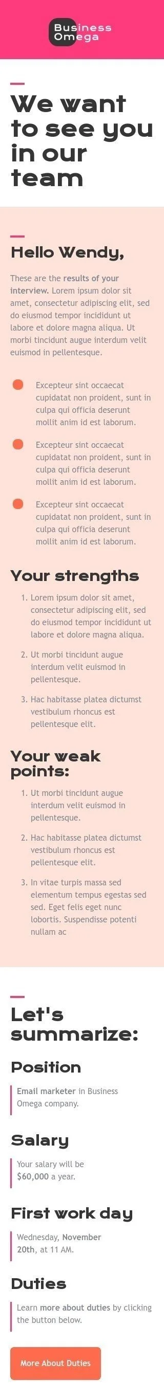 Werbung E-Mail-Vorlage «Wir möchten Sie in unserem Team sehen» für Business-Branche