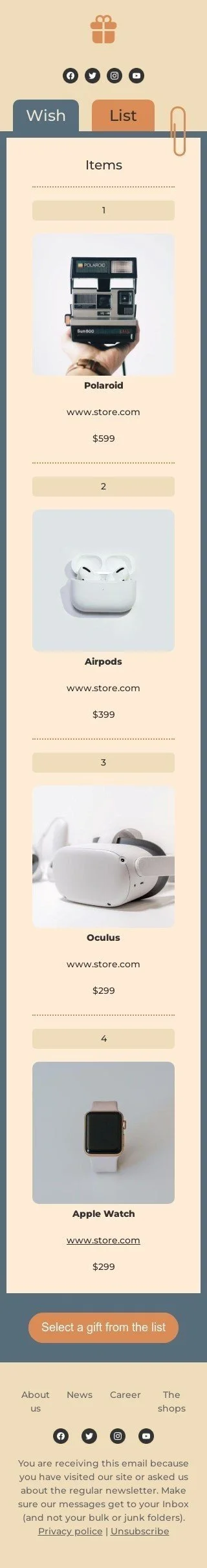 Werbung E-Mail-Vorlage «Wunschliste mit Gadgets» für Elektronik & Gadgets-Branche