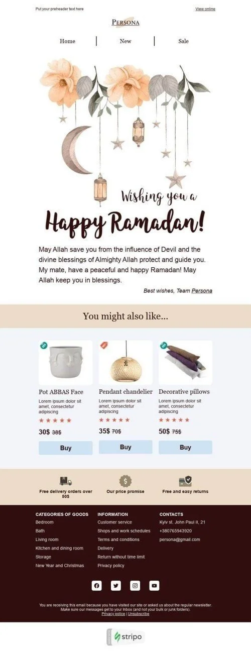 Ramadan E-Mail-Vorlage «Fröhlichen Ramadan» für Möbel, Innenausstattung & DIY-Branche
