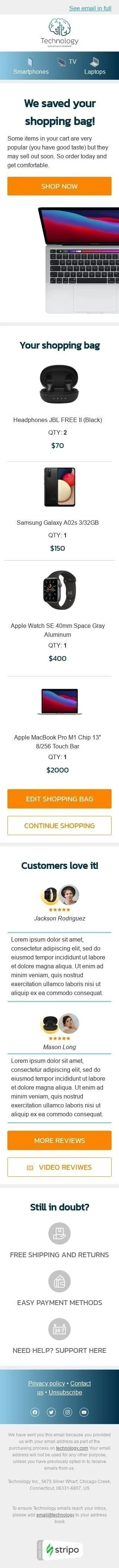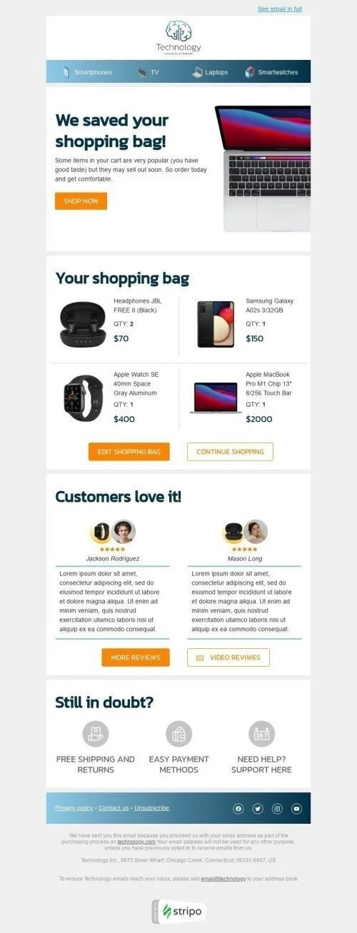 Retargeting E-Mail-Vorlage «Dein verlassener Wagen» für Elektronik & Gadgets-Branche