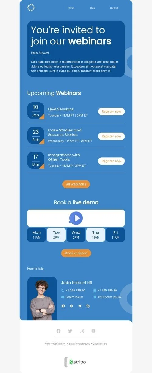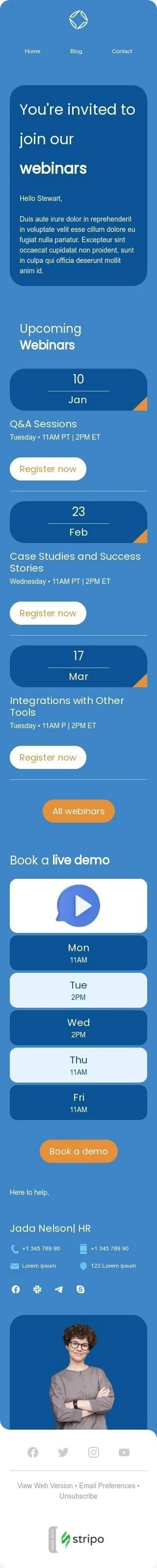 SaaS E-Mail-Vorlage «Sie sind eingeladen, an unseren Webinaren teilzunehmen» für Business-Branche