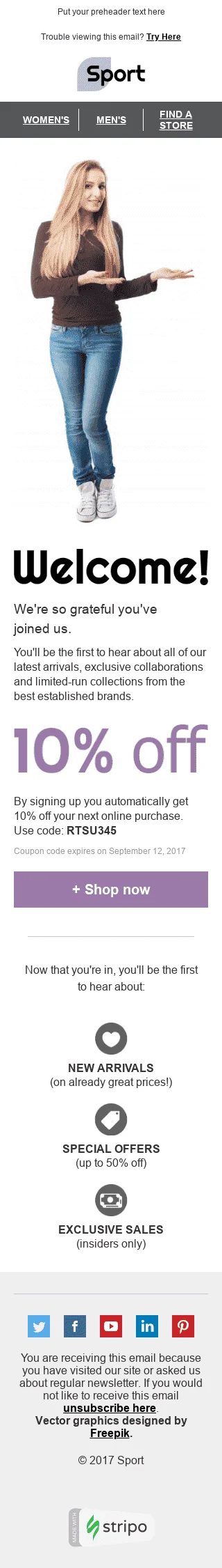 Willkommen E-Mail-Vorlage "Anfängerglück" für Sport-Branche