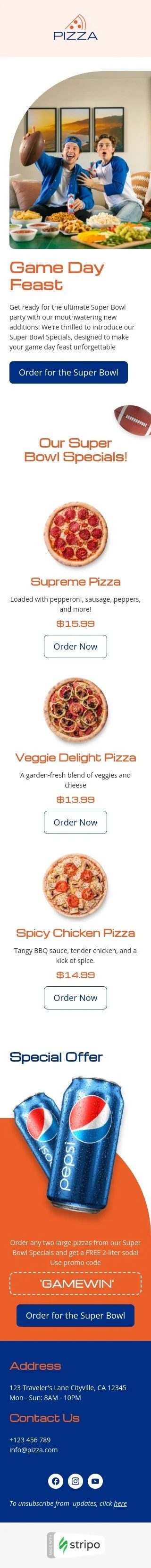 Super Bowl E-Mail-Vorlage «Spieltagsfest» für essen-Branche