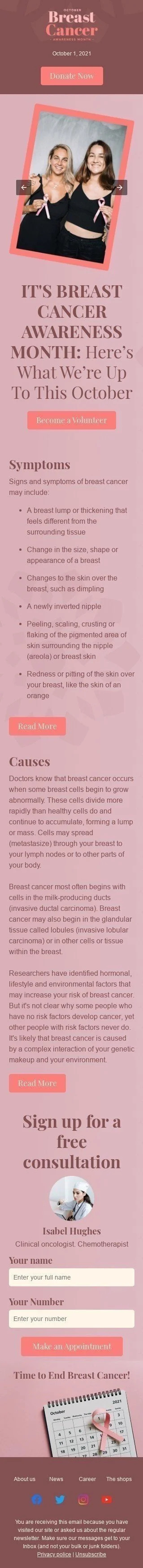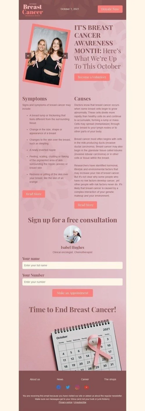 Brustkrebsmonat Oktober E-Mail-Vorlage «Bewusstseinsmonat» für Gesundheit und Schönheit-Branche