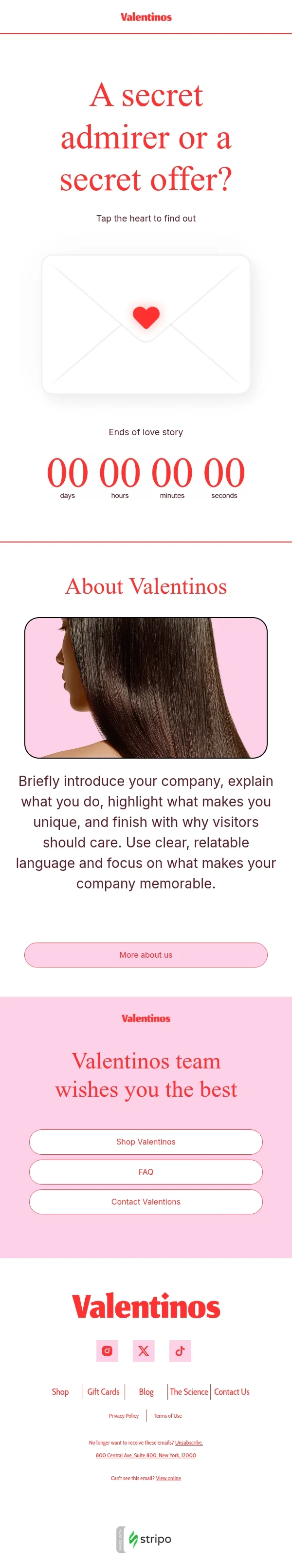 Valentinstag E-Mail-Vorlage «Tippe auf das Herz, um es herauszufinden» für E-Commerce-Branche