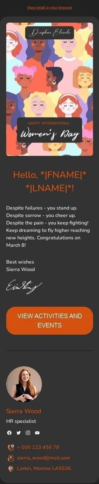 Weltfrauentag E-Mail-Vorlage «Herzlichen Glückwunsch am 8. März» für HR-Branche