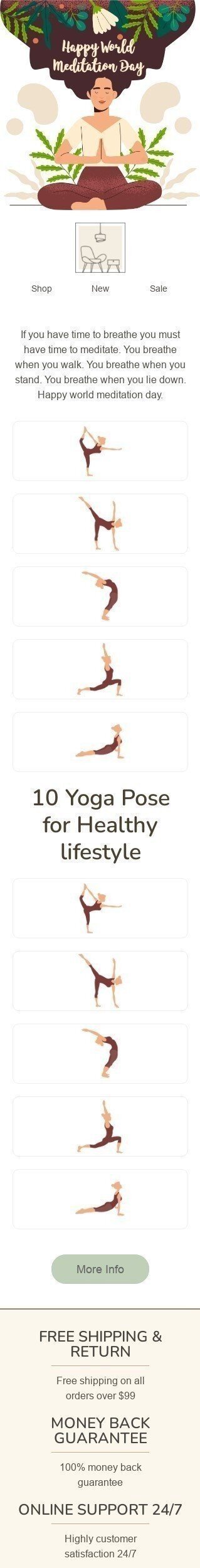 Welt-Meditationstag E-Mail-Vorlage «10 Yoga-Pose» für Möbel, Innenausstattung & DIY-Branche