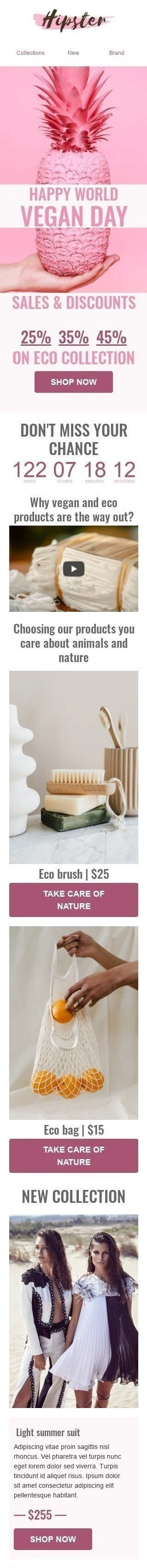 Weltvegantag E-Mail-Vorlage «Achte auf die Natur» für Mode-Branche