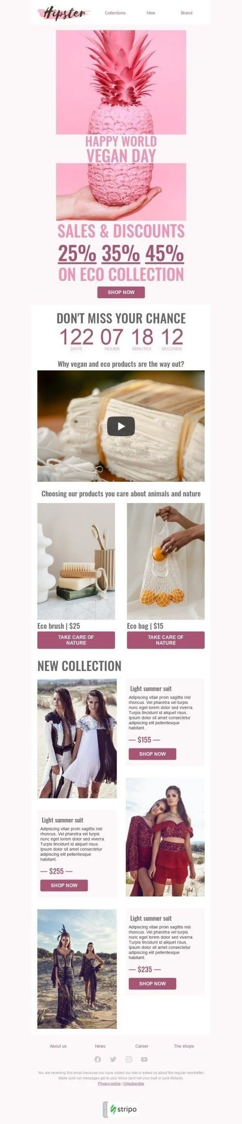 Setzen Sie ein Zeichen zum Welt-Vegan-Tag mit unserer "Kümmere dich um die Natur" E-Mail-Vorlage! Perfekt für die Modebranche, bietet diese Vorlage ein modernes und umweltbewusstes Design, das nachhaltige Modeoptionen präsentiert. Zeigen Sie den Kunden die Bedeutung von ethischen und umweltfreundlichen Entscheidungen mit dieser Vorlage. Egal, ob Sie neue Artikel, Verkäufe oder besondere Veranstaltungen bewerben, diese Vorlage wird Ihnen helfen, Kunden zu erreichen und sie zu ermutigen, bewusste Entscheidungen zum Welt-Vegan-Tag zu treffen. Umarmen Sie den Geist des Welt-Vegan-Tags und kümmern Sie sich um die Natur mit dieser stilvollen und nachhaltigen E-Mail-Vorlage!