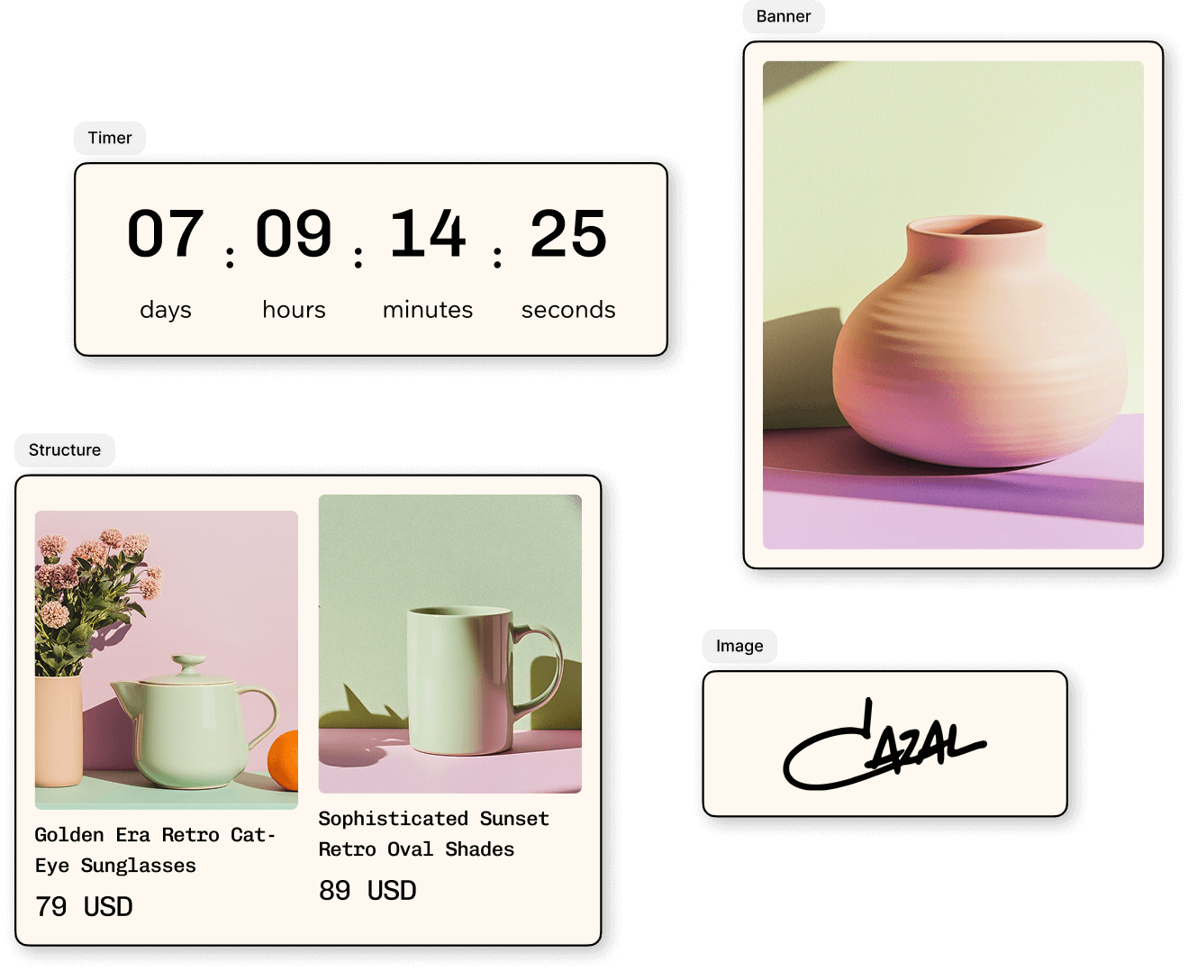 Construct your email from ready-made content blocks. Apply needed styles, save, and reuse across campaigns. Quicker, smarter, and always on-brand.