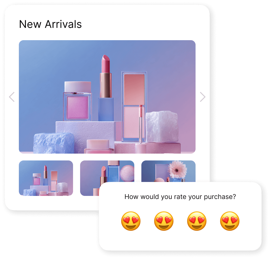 Aumente la tasa de respuesta 2,5 veces más. Puede colocar cualquier tipo de cuestionarios en sus correos electrónicos, como: reseñas de productos, encuestas, valoraciones NPS, sondeos y formularios abiertos.
