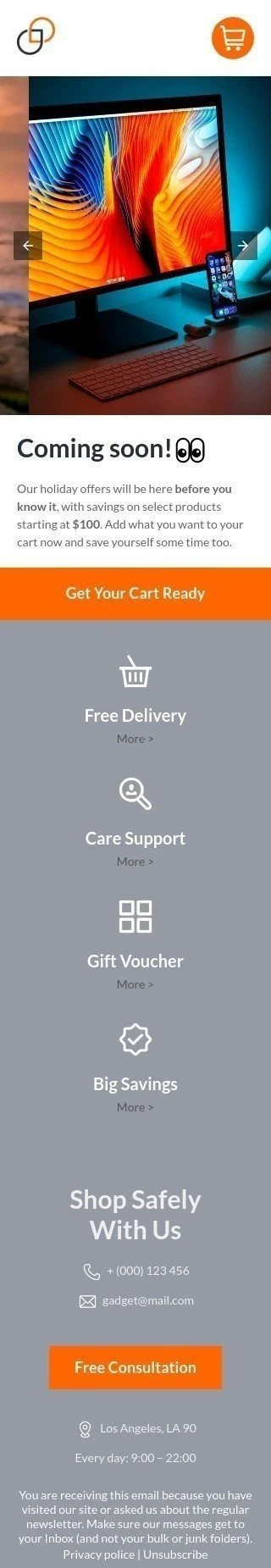 Plantilla de correo electrónico «Prepara tu carrito» de Anuncio para la industria de Gadget