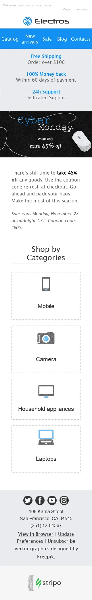 Plantilla de correo electrónico "Dispositivos para todos" de Ciberlunes para la industria de Gadget