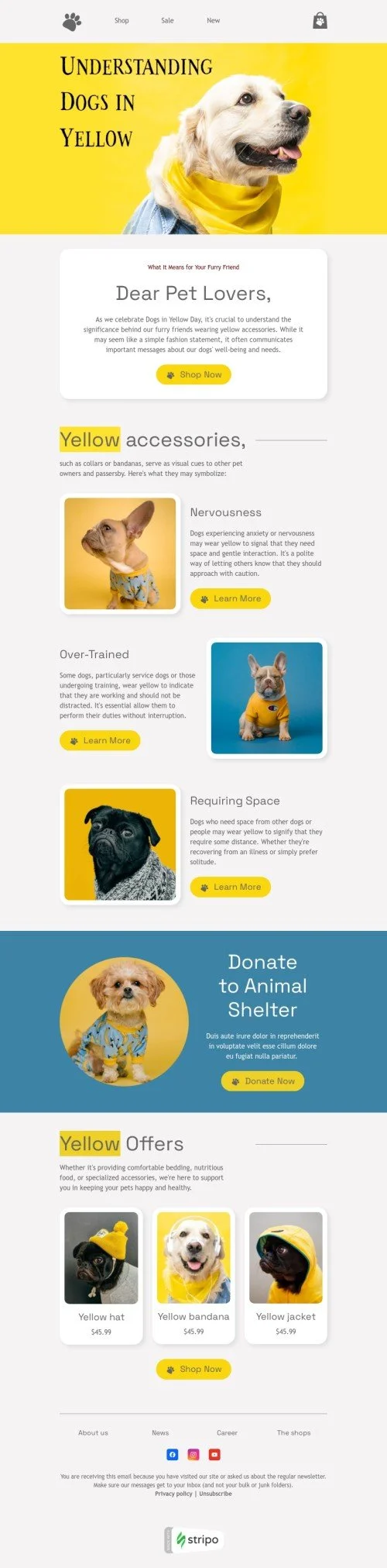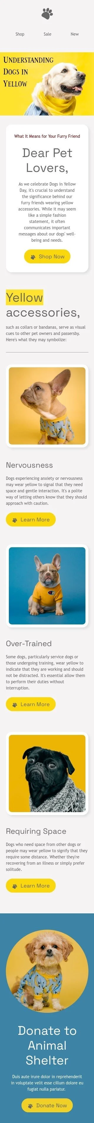 Plantilla de correo electrónico «Entendiendo a los perros en amarillo» de Día de los perros amarillos para la industria de mascotas