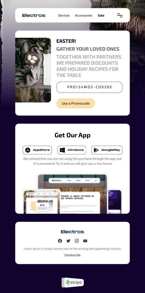 Get ready for Easter with our "Easter Table" email template, perfect for the Ecommerce industry. This template is designed to showcase your Easter products and inspire customers to create a beautiful and festive Easter table. It features high-quality images of Easter-themed decor, food, and table settings, along with a call-to-action button to make it easy for customers to shop. The template has a modern and festive design that can be easily customized to match your brand's aesthetic. Use it to promote your Easter products and boost your sales this Easter season.