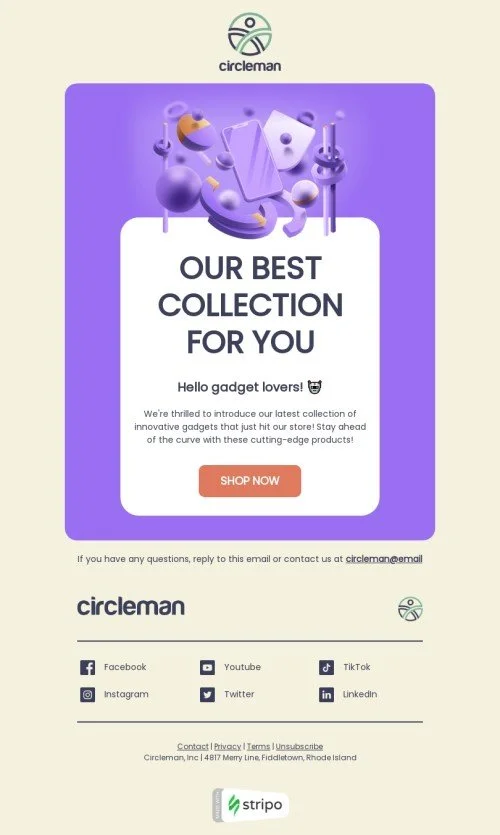 Plantilla de correo electrónico «Hola amantes de los gadgets» de pie de página de correo electrónico para la industria de gadget