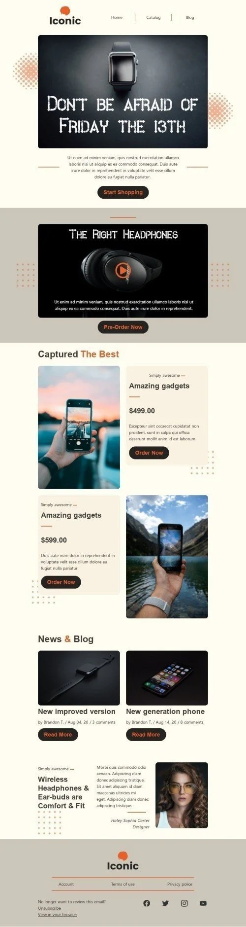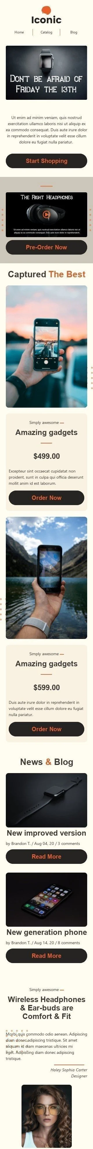 Plantilla de correo electrónico «Capturada la mejor» de Viernes 13 para la industria de Gadget