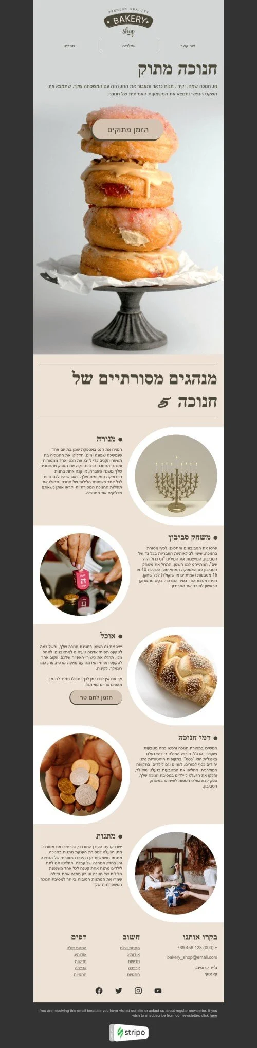 Plantilla de correo electrónico «Dulce Hanukkah» de Janucá para la industria de Gastronomía