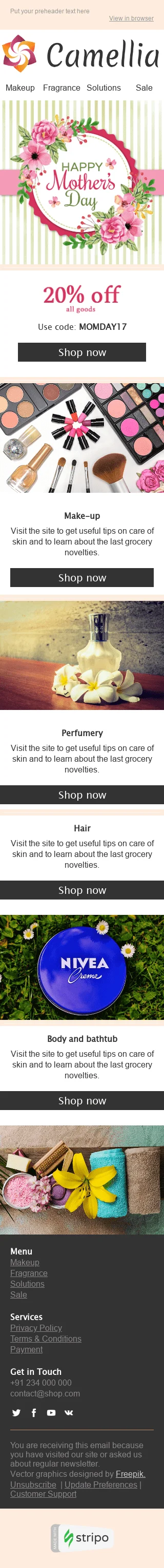Plantilla de correo electrónico "La ternura por los cosméticos" de Día de la Madre para la industria de Belleza y cuidado personal