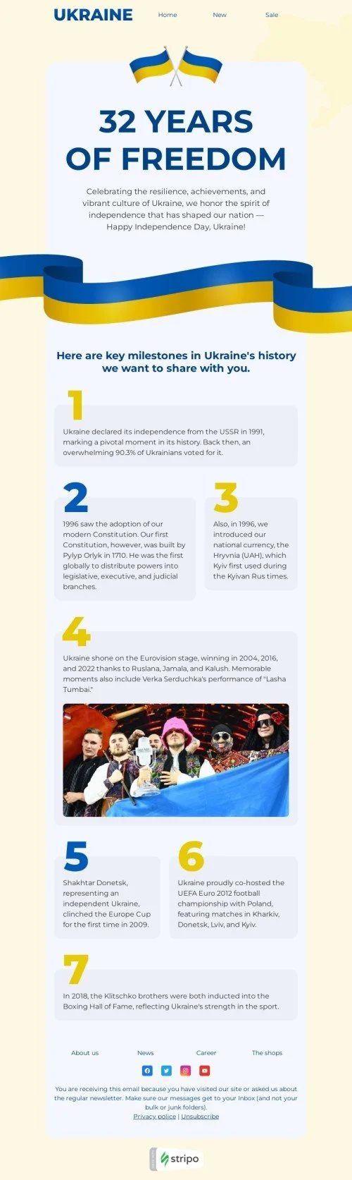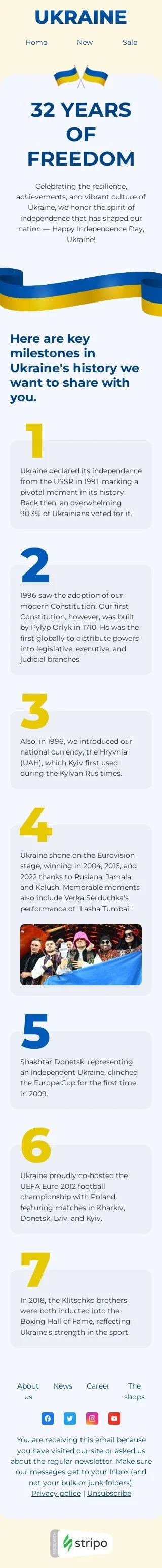 Plantilla de correo electrónico «32 años de libertad» de Día de la Independencia de Ucrania para la industria de sin fines de lucro y caridad