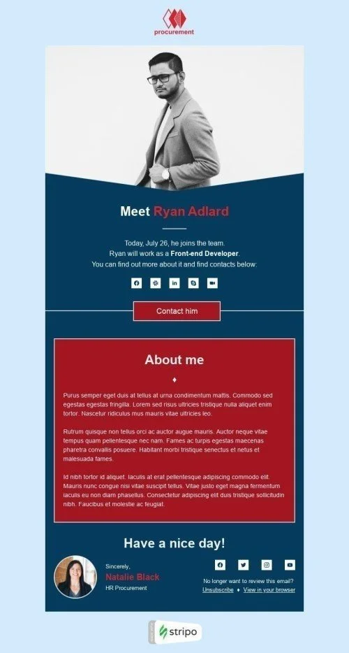 Plantilla de correo electrónico «Desarrollador front-end» de Internos para la industria de HR
