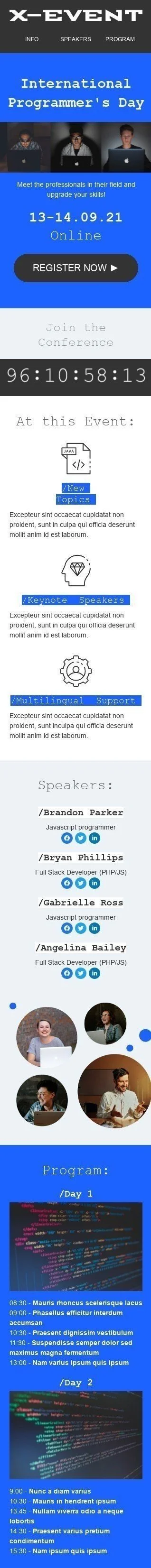 Celebra el Día Internacional de los Programadores con nuestra plantilla de correo electrónico "Mejora tus habilidades" para la industria de los pasatiempos. Esta plantilla informativa y profesional es perfecta para promover tu evento o taller de programación. Presenta un diseño moderno y un lenguaje que destaca la importancia del aprendizaje continuo y la mejora en el campo. La plantilla proporciona todos los detalles sobre tu evento, incluyendo fecha, hora, ubicación y agenda. Esta plantilla es fácil de personalizar y te ayudará a involucrar a tu comunidad de programación e inspirarlos a mejorar sus habilidades.