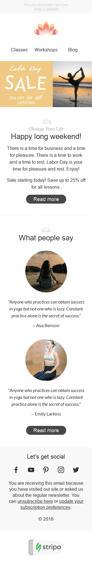 Plantilla de correo electrónico "Fin de semana largo" de Día del Trabajo para la industria de Deportes
