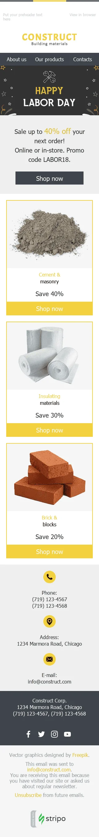 Plantilla de correo electrónico "Bonito regalo" de Día del Trabajo para la industria de Construcción